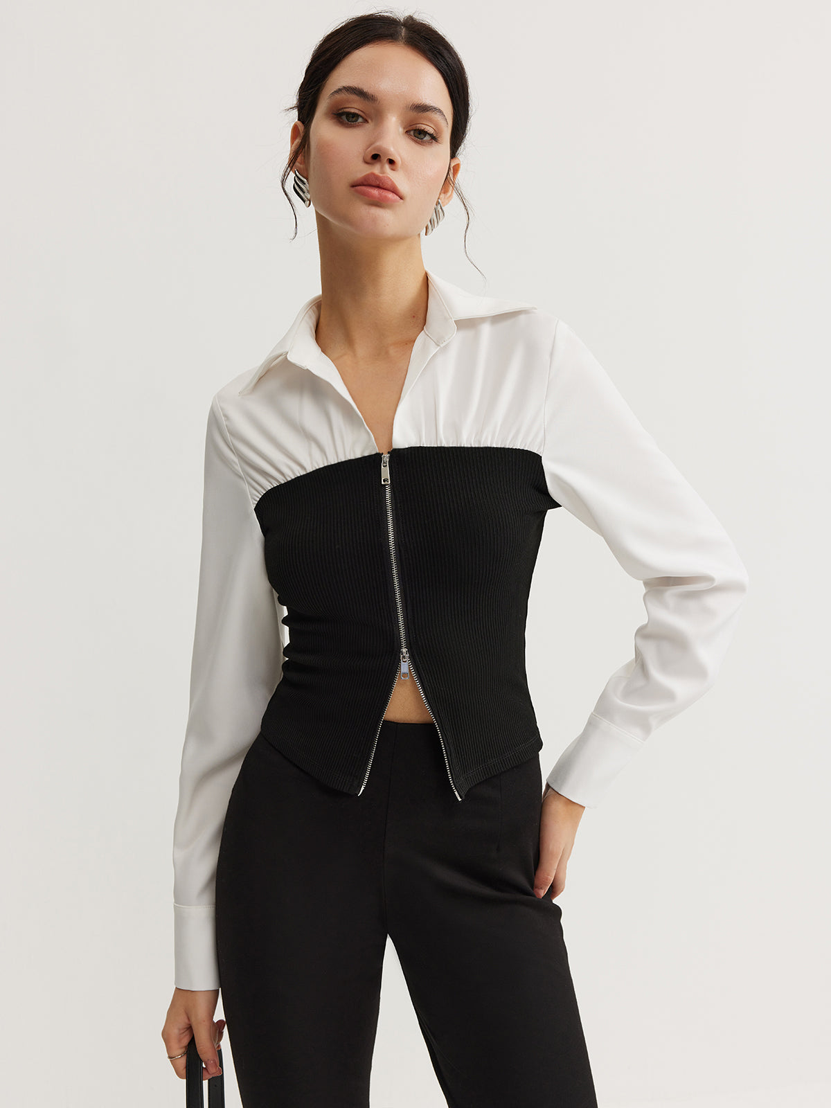 Çift Yönlü Fermuarlı Renk Bloklu Polo Gömlek