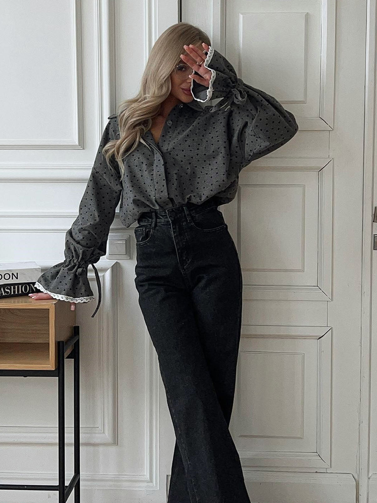Kadın Kalp Baskılı Düğmeli Gömlek